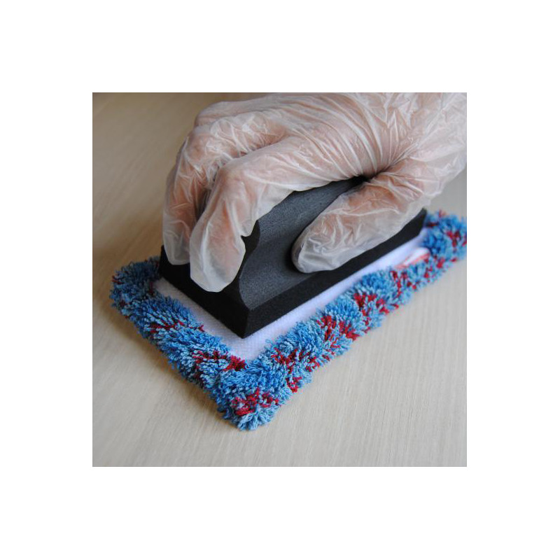 Mini bandeau microfibre EMR en tri-composition (polypropylène, polyester, polyamide). Se fixe via velcro sur poignée mousse. Idéal pour tables & surfaces planes.