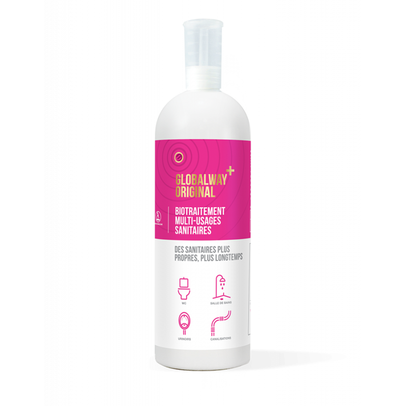 GLOBALWAY+ ORIGINAL est un biotraitement multi-usages pour sanitaires associant micro-organismes et biosurfactants. Il nettoie, détartrent, désodorise et entretient durablement toutes les surfaces sanitaires.