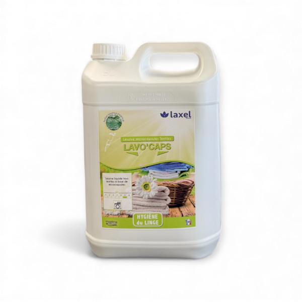 Lavo Caps est une lessive liquide concentrée dotée de micro-capsules de parfum qui libèrent progressivement l’odeur.