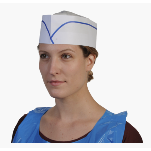 Le calot à liseré bleu Difotel combine hygiène, confort et élégance  dans les environnements exigeant une protection parfaite. Fabriqué en papier micro-perforé aéré, il est léger, réglable et respirant, idéal pour la distribution en restauration.