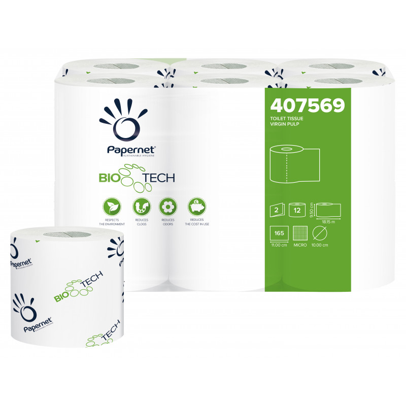 Le papier toilette Bio Tech est une innovation de la marque Papernet du groupe Sofidel. Grâce à la technologie BATP (Biologic Active Tissue Paper), il libère des micro-organismes non pathogènes qui dégradent les matières organiques dans les canalisations et les fosses septiques. Cette action empêche les dépôts, élimine les mauvaises odeurs et réduit les besoins d’entretien.