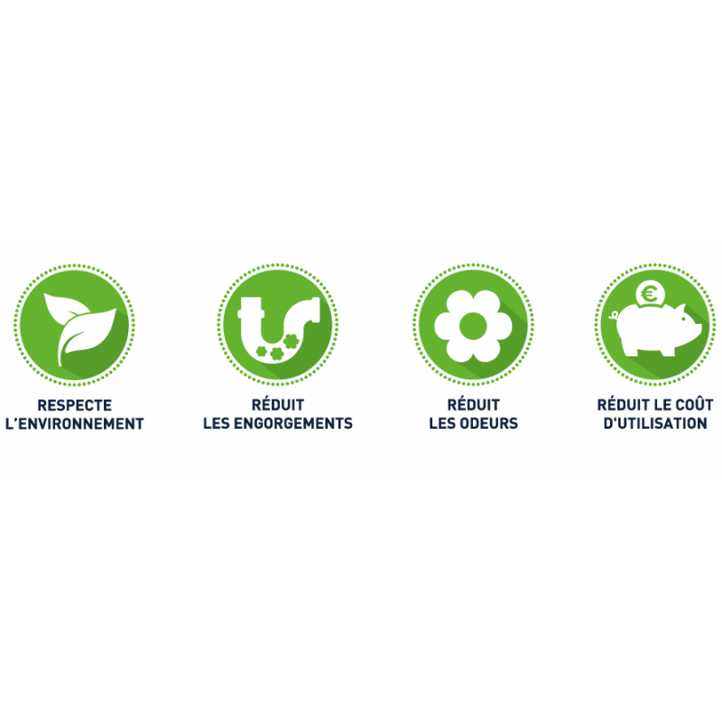 ✔ Réduction des bouchons et des mauvaises odeurs ;
