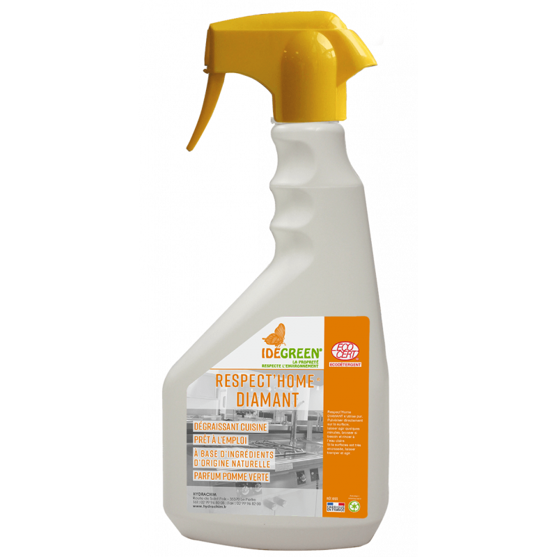 Respect'home Diamant® est un puissant nettoyant alcalin prêt à l’emploi, très efficace sur les surfaces grasses.