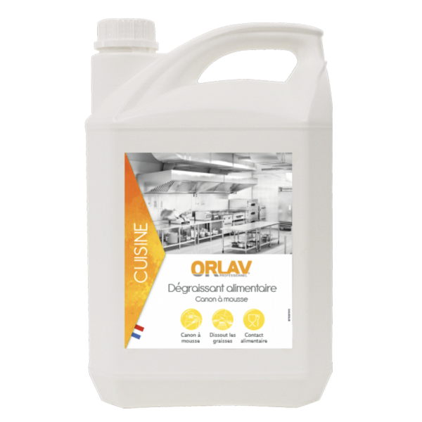 Dégraissant alimentaire canon à mousse est un détergent à haut pouvoir dégraissant pour l’entretien et le nettoyage des sols et matériels de cuisine à l'aide d'un pulvérisateur ou d'un canon à mousse. Efficace sur les hottes de ventilation des cuisines professionnelles.