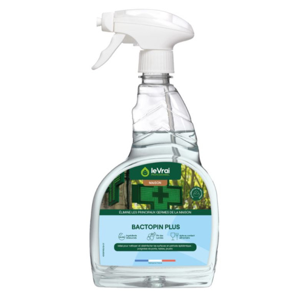 BACTOPIN PLUS PAE désinfectant multi-surfaces prêt à l’emploi. Nettoie, désinfecte et élimine bactéries, levures et virus enveloppés. Idéal zones de contact. Fabrication française.