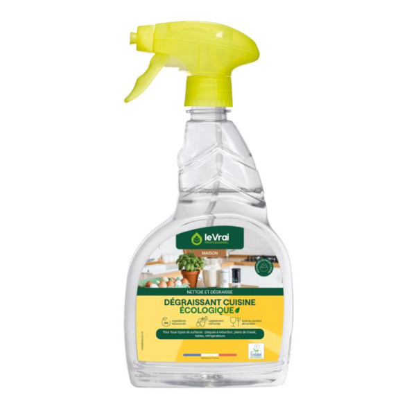 Dégraissant cuisine écologique prêt à l’emploi. Nettoie et dégraisse sans laisser de traces toutes surfaces de cuisine. Efficace sur huiles et graisses cuites.