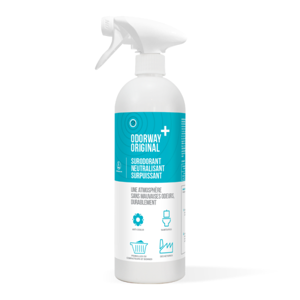 Odorway + Original est un spray prêt à l’emploi conçu pour éliminer les odeurs persistantes dans les espaces variés (sanitaires, bureaux, cuisines, véhicules, tissus d’ameublement). Mais aussi par sa concentration surpuissante il est efficace sur les odeurs de déchets industriels et urbains parmi les plus difficiles tels que : équarrissage, lixiviat, conteneurs à déchets, poubelles compacteurs, déchetteries etc... .